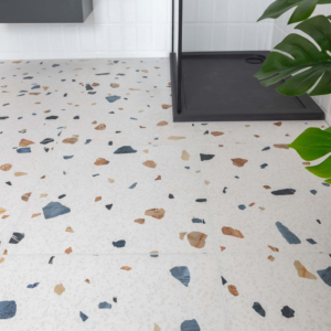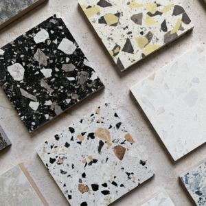 Invented in the fifteenth century by Venetian marble workers, terrazzo is a combination of marble chips in a binding matrix (back then it was clay) that is poured on site then grinded to reveal a spectacular random mosaic of colors. Today we modernize this beautiful old concept by introducing various colored aggregates such as crushed marble chips from all over the world, crushed glass, mirrors, Onyx and Mother of Pearl combined in technologically advanced matrices such as specialty epoxy resins, polymer-modified Portland cement, or special hydraulic cements, thereby expanding the design possibilities and performance.